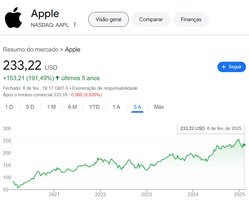 Como vocês podem ver, essas empresas tiveram uma valorização invejável nos últimos anos. Infelizmente a maioria dos brasileiros sequer investem em ações nacionais, quem dirá em ações internacionais e, consequentemente estão deixando passar uma ótima oportunidade de investimentos.