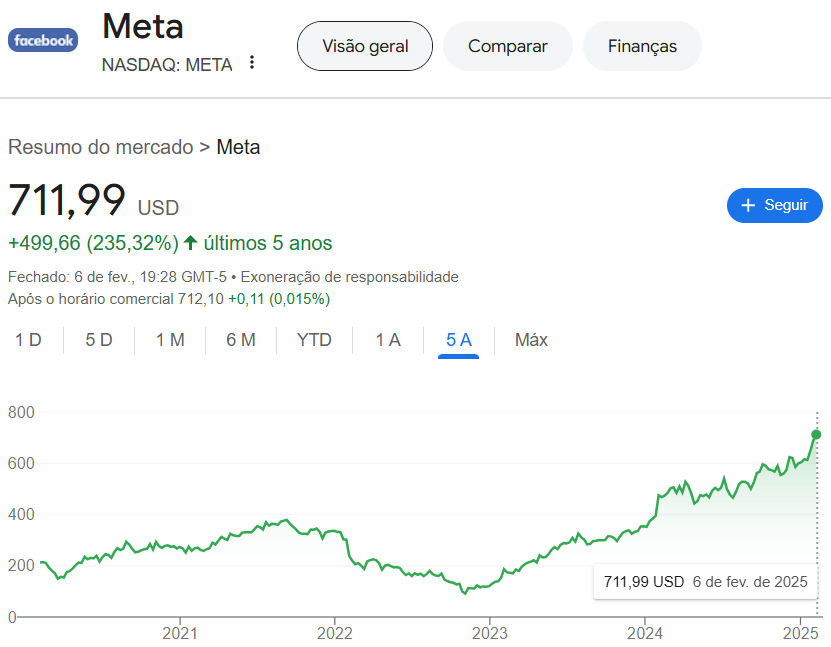 Sob a liderança de Mark Zuckerberg, a Meta continua investindo em inovação, expandindo sua atuação em IA e no metaverso, ao mesmo tempo em que mantém suas redes sociais como seu principal motor de crescimento.