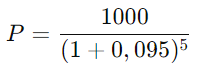 Sabendo antecipadamente os juros que serão pagos, o prazo de vencimento e também o seu valor no vencimento, o único fator variável deste título é o seu valor presente, ou seja, seu preço. Verifique abaixo a fórmula utilizada para calcular o preço de um título prefixado que não paga cupons: