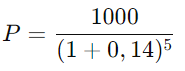 F = Valor de face, o valor que será pago no vencimento (nesse caso sabemos que é R$1.000).