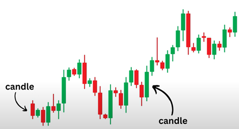Cada vela representa a variação do preço de uma ação em determinado período de tempo, normalmente um dia. Basicamente, quando a vela está verde significa que o preço está subindo porque há mais pessoas comprando do que vendendo. Quando a vela está vermelha, significa que o preço está caindo porque há mais pessoas vendendo do que comprando.