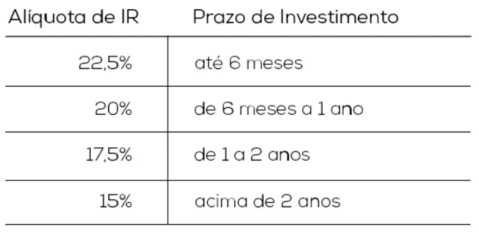 - Quanto mais tempo você permanecer na sua aplicação, menor será a alíquota de IR.