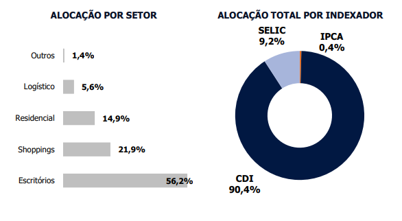 • Veja abaixo a carteira de um fundo de tijolo em shoppings.